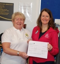 Our treasurer presents the cheque to Orchyd, January 2018. |